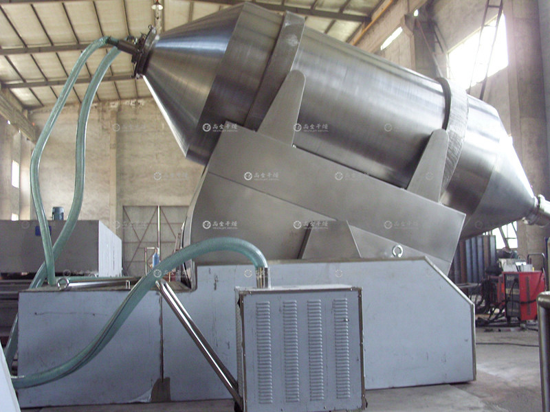 EYH二維混料機(jī)的轉(zhuǎn)筒可同時(shí)進(jìn)行二個(gè)運(yùn)動(dòng),一個(gè)為轉(zhuǎn)筒的轉(zhuǎn)動(dòng),另一個(gè)為轉(zhuǎn)筒隨擺動(dòng)架的擺動(dòng)。被混合物料在轉(zhuǎn)筒內(nèi)隨轉(zhuǎn)筒轉(zhuǎn)動(dòng)、翻轉(zhuǎn)、混合的同時(shí),又隨轉(zhuǎn)筒的擺動(dòng)而發(fā)生左右來(lái)回的摻混運(yùn)動(dòng),在這兩個(gè)運(yùn)動(dòng)的共同作用下,物料在短時(shí)間內(nèi)得到充分的混合。EYH二維混料機(jī)適合所有粉、粒狀物料的混合。