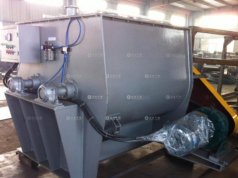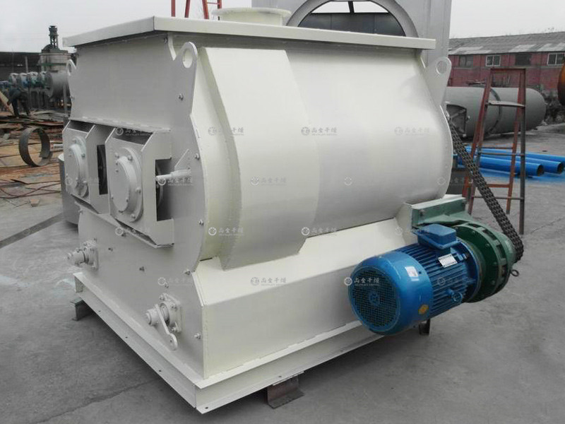 本系列混合機(jī)以強(qiáng)烈、高效混合為特點(diǎn)、臥式筒體內(nèi)兩根攪拌等速反向旋轉(zhuǎn),上特殊布置的槳葉確保物料徑向、環(huán)向、軸向三向運(yùn)動,形成復(fù)合循環(huán),在極短的時間內(nèi)達(dá)到均勻混合。