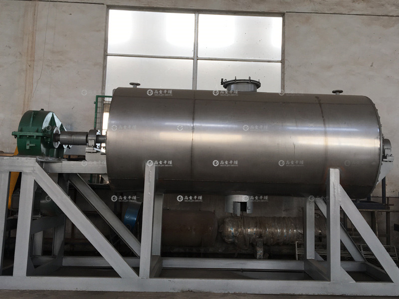 本機(jī)是一種新穎臥式間歇式真空干燥設(shè)備,濕物料經(jīng)傳導(dǎo)蒸發(fā),帶有刮板攪拌器不斷清除熱面上的物料,并在容器內(nèi)推移形成循環(huán)流,水份蒸發(fā)后由真空泵抽出。