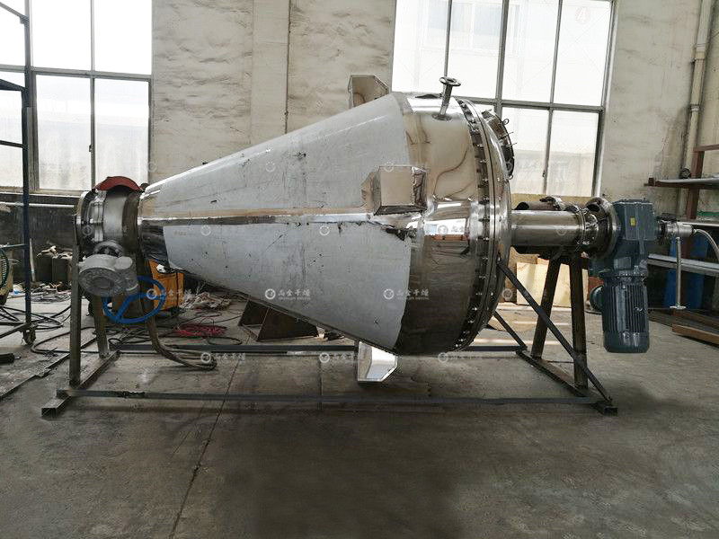 本機是一種新穎臥式間歇式真空干燥設備,濕物料經(jīng)傳導蒸發(fā),帶有刮板攪拌器不斷清除熱面上的物料,并在容器內(nèi)推移形成循環(huán)流,水份蒸發(fā)后由真空泵抽出。