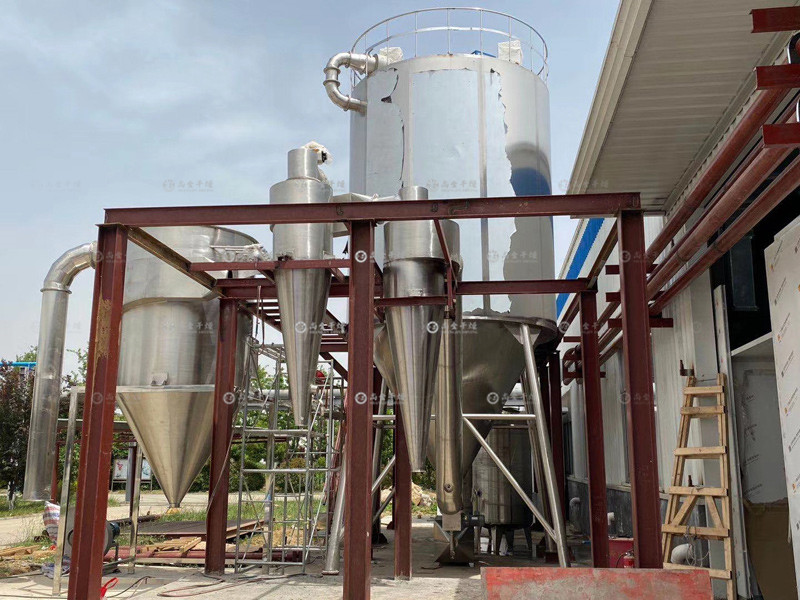 (1)干燥速度十分迅速,料液經(jīng)噴霧后,表面積增大,在高溫氣流中,瞬間就可以蒸發(fā)掉大部份的水分,完成干燥時間一般僅需5-40S左右。