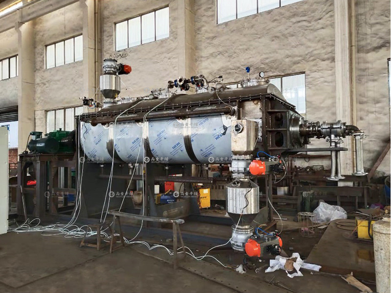 1. Using thermal oil as the thermal medium, the blade dryer can complete low-temperature calcination work. For example, calcium sulfate dihydrate (Ca ? SO4 ? 2H ? O) is calcined and converted into calcium sulfate dihydrate (Ca ? SO4 ? 1/2H ? O). Sodium bicarbonate (NaHCO ?) is converted into soda ash (Na ? CO ?) through calcination.