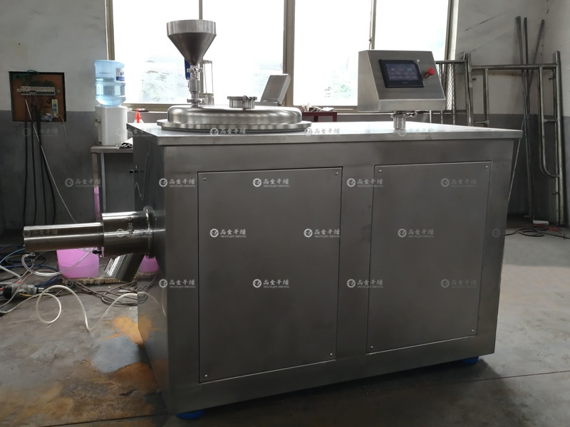 粉體物料與粘合劑在圓筒形容器中由底部混合漿充分混合成濕潤(rùn)軟材,然后由側(cè)置的高速粉碎槳切割成均勻的濕顆粒。