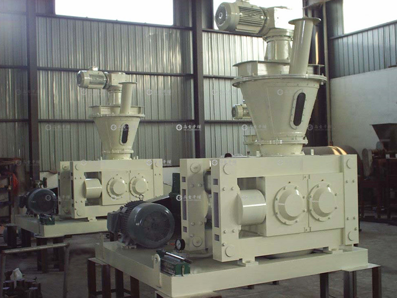 擠壓造粒的形式可以有對(duì)輥式和輪輾式兩種,對(duì)輥式擠壓是先壓成大塊,再破碎成顆粒,這樣裝置的能力大、顆粒強(qiáng)度高、能耗低,對(duì)輥擠壓在國(guó)外使用廣泛。輪輾式是在輥表面直接做成有穴槽型的形狀,一次擠成成型顆粒。產(chǎn)品強(qiáng)度較低有時(shí)需添加粘結(jié)劑。適合做有機(jī)肥和復(fù)合肥等顆粒肥料。