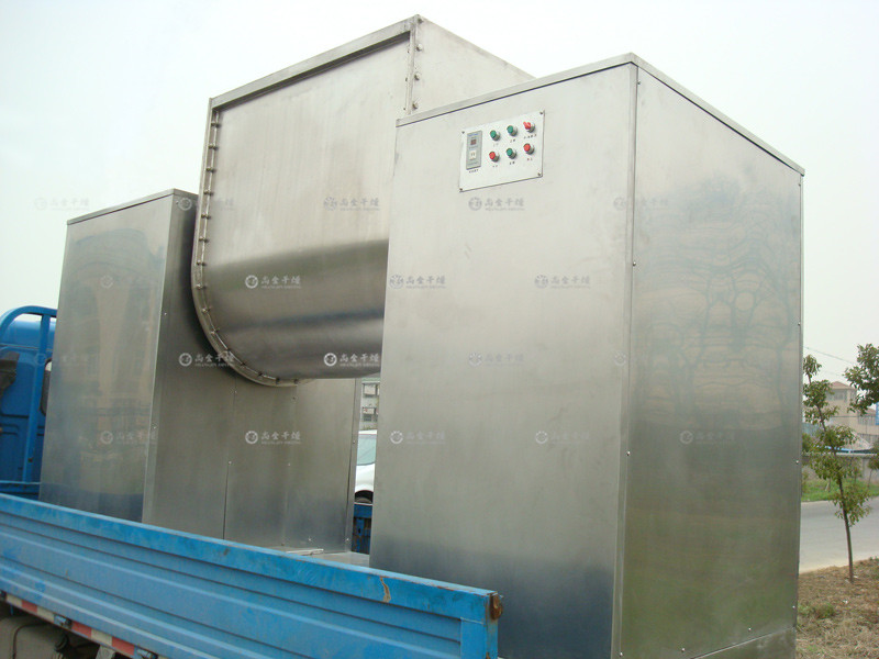 該機(jī)型由容器、螺旋攪拌葉片和傳動(dòng)部件組成:螺旋葉片一般做成雙層或三層,外層螺旋將物料從兩側(cè)向中央?yún)R集,內(nèi)層螺旋將物料從中央兩側(cè)輸送,形成對(duì)流混合。