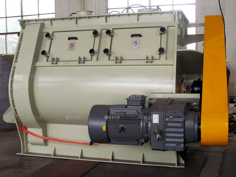 本系列混合機(jī)以強(qiáng)烈、高效混合為特點(diǎn)、臥式筒體內(nèi)兩根攪拌等速反向旋轉(zhuǎn),上特殊布置的槳葉確保物料徑向、環(huán)向、軸向三向運(yùn)動,形成復(fù)合循環(huán),在極短的時間內(nèi)達(dá)到均勻混合。